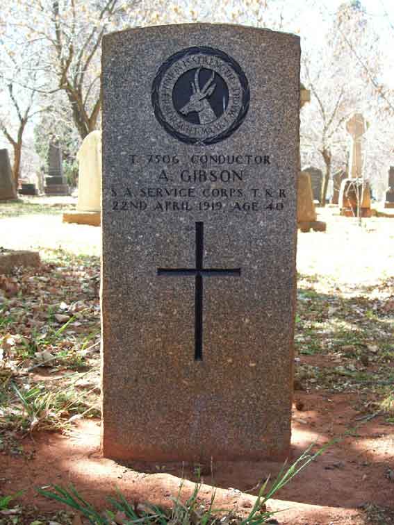 GIBSON, Conductor, A, T/7506, South African Service Corps. 22 April 1919. Grave Ref. General Section. 4870. Photo |